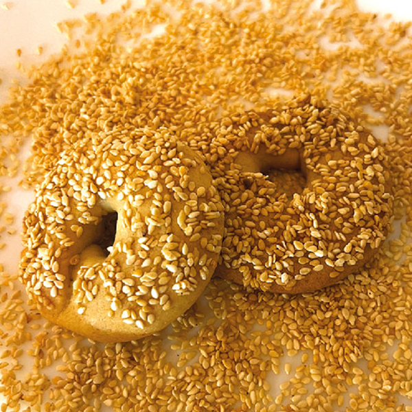 Vetmjöl, socker, klarat vegetabiliskt fett, klarat smör, vanilj, sesam.